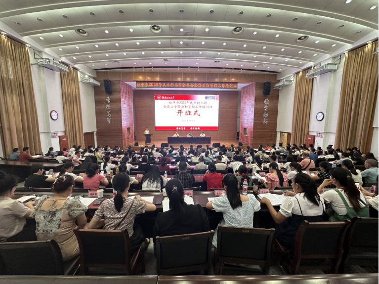 7月4日上午,“桂平市2023年民办幼儿园食品安全暨后勤管理工作培训班”在我校顺利开班。桂平市教育后勤服务中心主任韦江永,桂平市成人教育管理中心主任黄金华,beats365(中国区)-唯一官方网站继续教育学院副院长张海林以及来自桂平市民办幼儿园的140余位学员参加开班式。