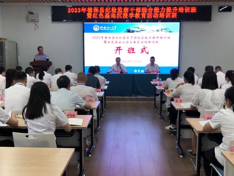 7月17日上午,“2023年德保县纪检监察干部综合能力提升暨红色基地沉浸学教育活动培训班”在我校顺利开班。德保县委常委、县纪委书记、县监委主任岳非平,学校继续教育学院成高管理中心主任段伟才以及来自德保县纪委监委的40余位学员参加了开班式。