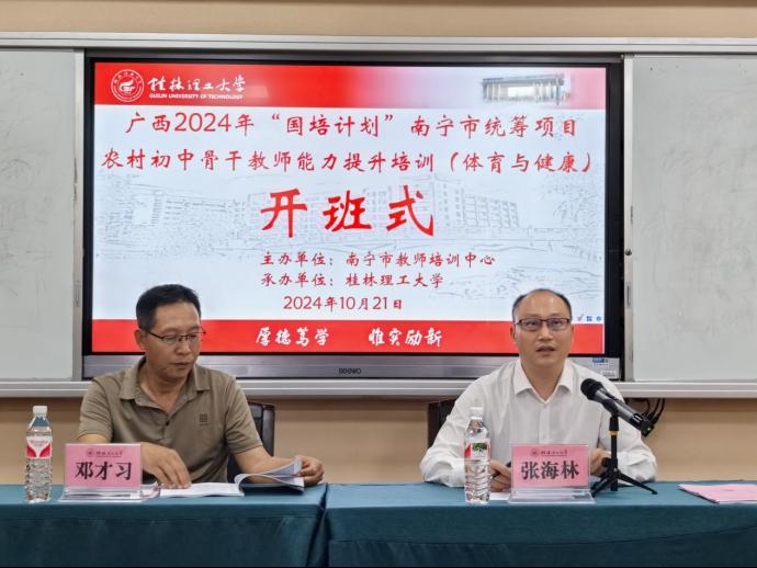 10月21日下午,广西2024年“国培计划”南宁市统筹项目——农村初中骨干教师能力提升培训(体育与健康)在我校顺利开班。南宁市教师培训中心副主任邓才习、beats365(中国区)-唯一官方网站继续教育学院副院长张海林及来自南宁市的80余位初中体育与健康骨干教师参加了开班式。