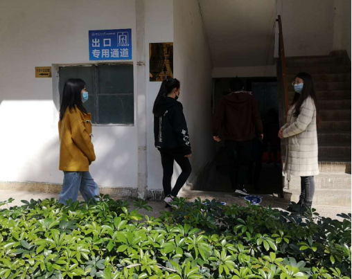 演练场景1:在教十楼门口设置体温检测点,对进入教学楼的师生进行体温检测、佩戴口罩情况检查。针对不同情况的师生,由工作人员进行分类处置:对无异常的,引导其保持合理间距,按指定通道有序进入教学楼;对未佩戴口罩的,对其进行劝导教育并按程序发放口罩;对有发热症状的,引领其至专门区域进行隔离观察。