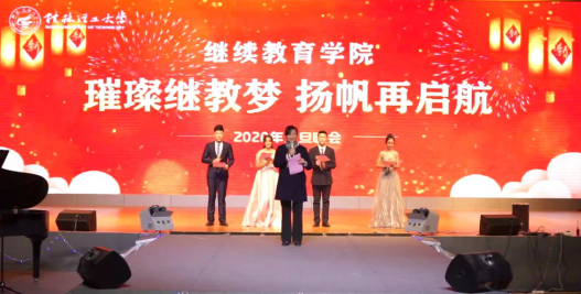 继续教育学院院长熊英为晚会致辞,她对学院过去一年工作进行了简要总结并对即将来临的2020年寄予美好的祝福。