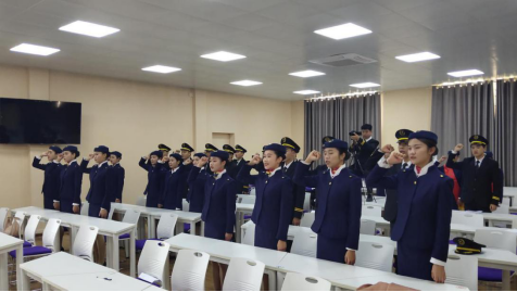 随后,授装正式开始,被授装学生郑重接过标志着民航人风采的制服。全体学员庄严宣誓:“为民航事业贡献自己的智慧与力量,为成为一名优秀的民航人时刻准备着!”