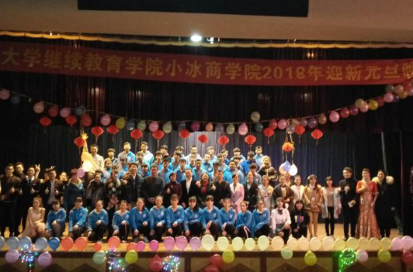 2017年12月29日晚,继续教育学院小冰商学院在南校区礼堂隆重举办了以“畅想未来,圆梦电商”为主题的元旦迎新晚会。小冰商学院院长陈燕明、继续教育学院副院长叶涌及部分科室领导参加了晚会,与现场师生共聚一堂,喜迎新年。