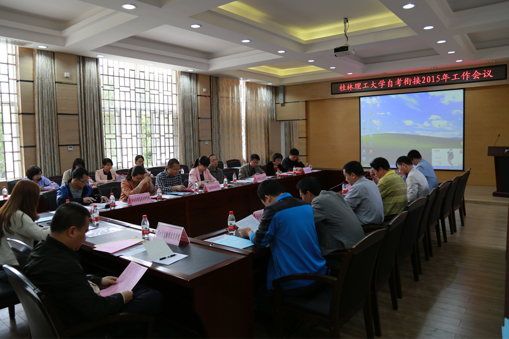 4月23至24日,我校高等教育自学考试衔接工作会在屏风校区教十楼多功能室举行。继续教育学院领导和自考办全体人员,以及来自桂林航天工业学院、贺州学院、桂林旅游高等专科学校、桂林师范高等专科学校、广西建设职业技术学院等区内8所衔接院校的继续教育学院(中心)、系(院)负责自考衔接工作的领导及教学、管理人员参加会议。会议由继续教育学院沈云发副院长主持。继续教育学院叶涌副院长首先通报了我校自考衔接工作基本情况和总结我校2014年自考衔接工作。随后桂林航天工业学院和桂林师范高等专科学校做衔接工作经验介绍:着重介绍了他们在统一认识,强化协调沟通,完善招生宣传激励机制,强化服务意识,做好组织工作,优化教学管理体系、严格助学辅导等方面采取的措施。其他衔接院校代表也结合各自实际情况做了介绍,同时提出存在的问题和建议。