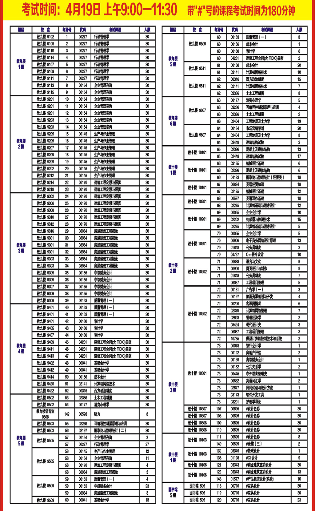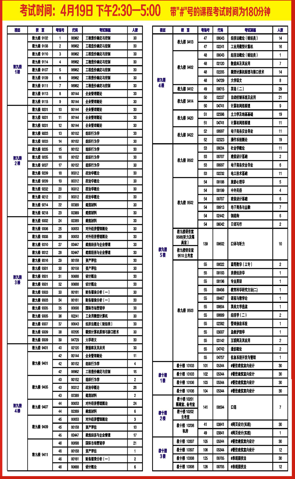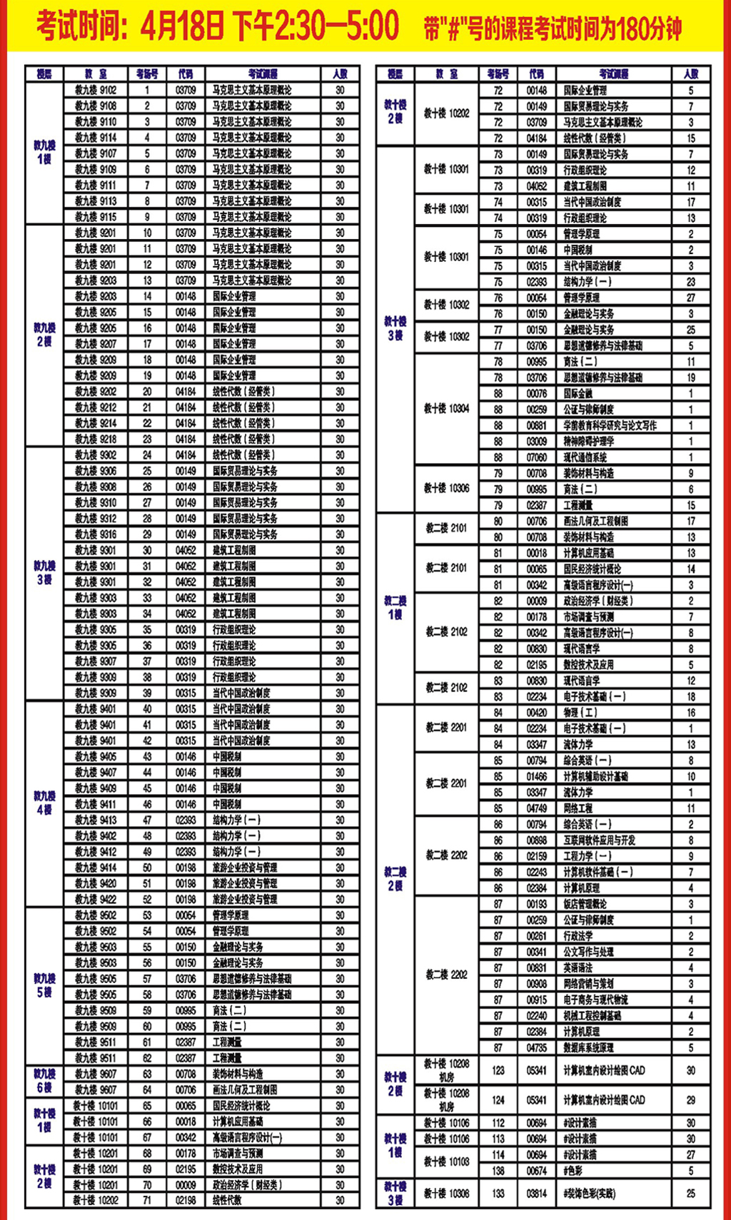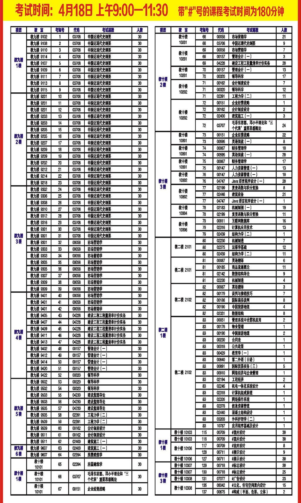 桂林理工2015年4月自考考场安排 发布者:继教院考试中心 2015-04-02 已阅人次 桂林理工2015年4月自考考场安排如下: 点击下载【桂林理工2015年4月自考考场安排】安排表 上一条:继续教育学院校外函授辅导站举行开学典礼 下一条:我院召开2015年全国中小学教师资格考试安全工作会议 关注我们