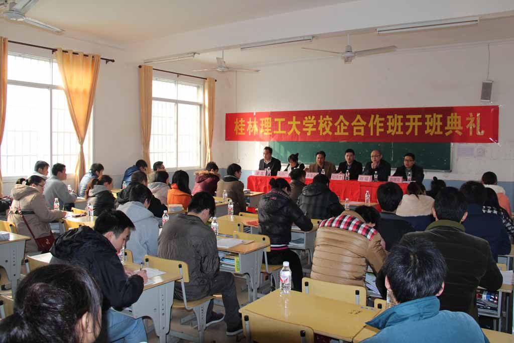 2013年12月27、28日,我院南宁拓普函授教学点2014级函授新生开学典礼分别在南丹县大厂镇和南宁市举行。学院副院长叶涌、招生办主任段伟才、教务管理老师及函授站负责人等领导出席了开学典礼。开学典礼上,叶副院长首先对所有新同学的加入表示了祝贺和欢迎,对我校悠久的历史渊源及蓬勃的发展现况做了详细介绍,对我校函授教育的开展状况和教学特点做了讲解。同时也对新同学提出了三点期望:第一,明确学习目的,珍惜学习机会;第二,作为成人教育的学生,要妥善处理好工作、学习和生活之间的矛盾,做到工作学习“两不误、两促进”;第三,遵守校规校纪,求真务实,刻苦努力。随后,新生代表发言,代表全体新生表示要珍惜学习机会,认真处理好工学矛盾,以优异成绩回报学校。最后,拓普函授站负责人作了总结发言。希望同学们抓住这次学习机会,认真学习更多的知识,为将来的美好生活而努力奋斗。