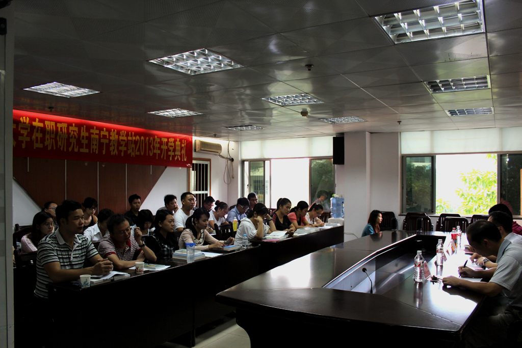 11月8日至12月10日,继续教育学院在百色市、柳州市、南宁市和梧州市分别举办2013年在职研究生班开班典礼,并聘请专家教授给各地研究生班学生进行了公共课和专业课的面授。2013年报读我院在职研究生班的学员共计250余人,学员专业分布主要为工商管理、公共经济与管理、中国少数民族经济和土木工程等4大特色专业。继续教育学院副院长叶涌率培训中心同志到以上各地参加并主持开班典礼,各地研究生班站点负责人员及学员对我校前来上课教师表示了热烈欢迎。在开班典礼上,叶涌副院长代表学院对2013级研究生班新学员就读我校表示了热烈欢迎,并介绍了学校的历史以及近些年来各方面的发展情况,同时对学员学习也提出了要求与希望,鼓励大家能持之以恒,圆满完成学业,顺利毕业。