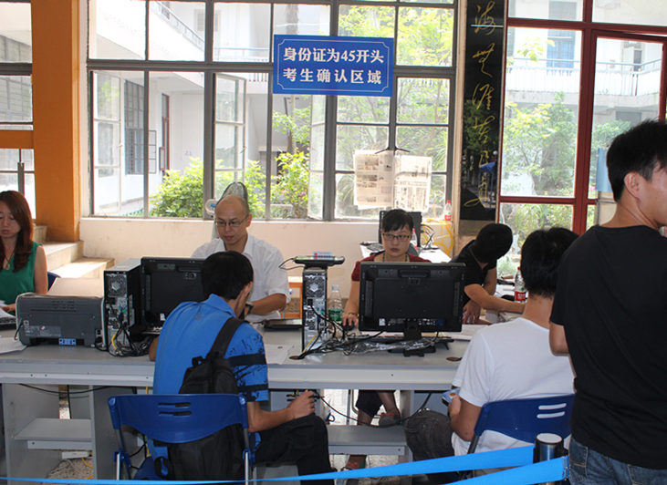 9月9日起,2013年成人高等学校招生全国统一考试报名进入现场确认阶段,我校作为广西招生考试院指定的成人高考高校考区,对今年在我校报名参加成人高考的考生组织报名信息现场确认工作,目前,现场确认工作正在顺利进行中。