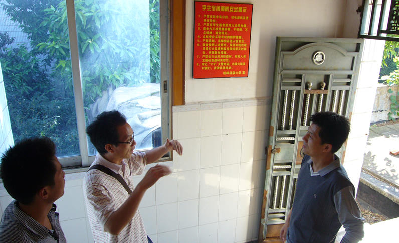 检查人员重点检查了学生的住宿环境,包括电线线路安全、消防设施配备、走道护栏安全、热水供给、值班人员配备等情况。通过详细了解宿舍管理方面的情况,王川凡科长明确要求将消防设备的年检、护栏加固、保证应急通道畅通等方面落实到位,确保学生的生命财产安全。在检查过程中,检查人员不断提醒同学们要注意人身安全,保管好个人物品,禁止使用大功率电器,做好防火防盗的准备工作。