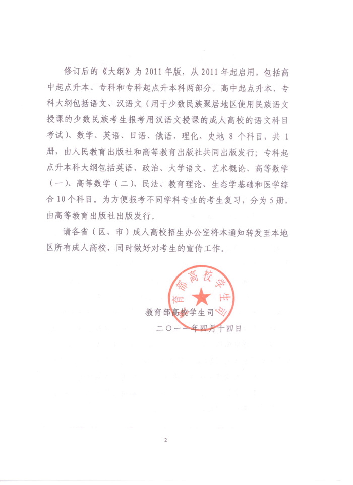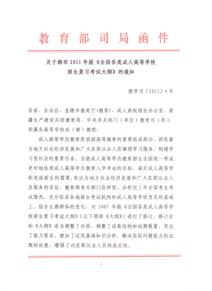 2011年全国各类成人高等学校招生复习考试大纲