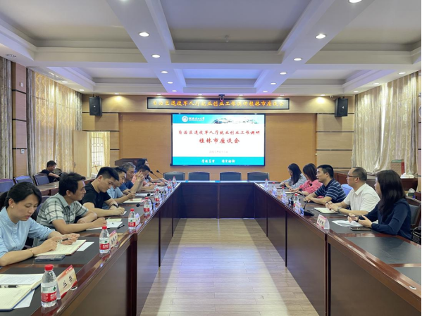 6月1日下午,自治区退役军人事务厅就业创业处朱应相副处长、桂林市退役军人服务中心刘赤焱副主任及相关人员到学院调研交流,学院院长周国桥、副院长张海林及相关人员参加了座谈会。