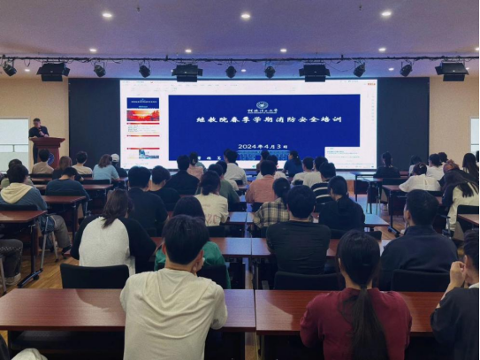 演练开始前,学校邀请了保卫处王治国老师在国际园区二楼多功能厅开展消防安全讲座,对近年来的火灾事故进行分析,从如何报火警、火灾的预防、火场自救及逃生方法等消防安全基本常识进行了讲解培训。