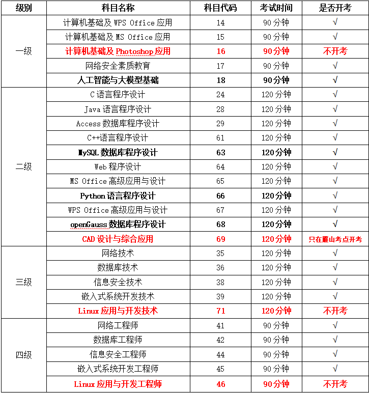 现将2025年9月全国计算机等级考试有关事项通知如下:
