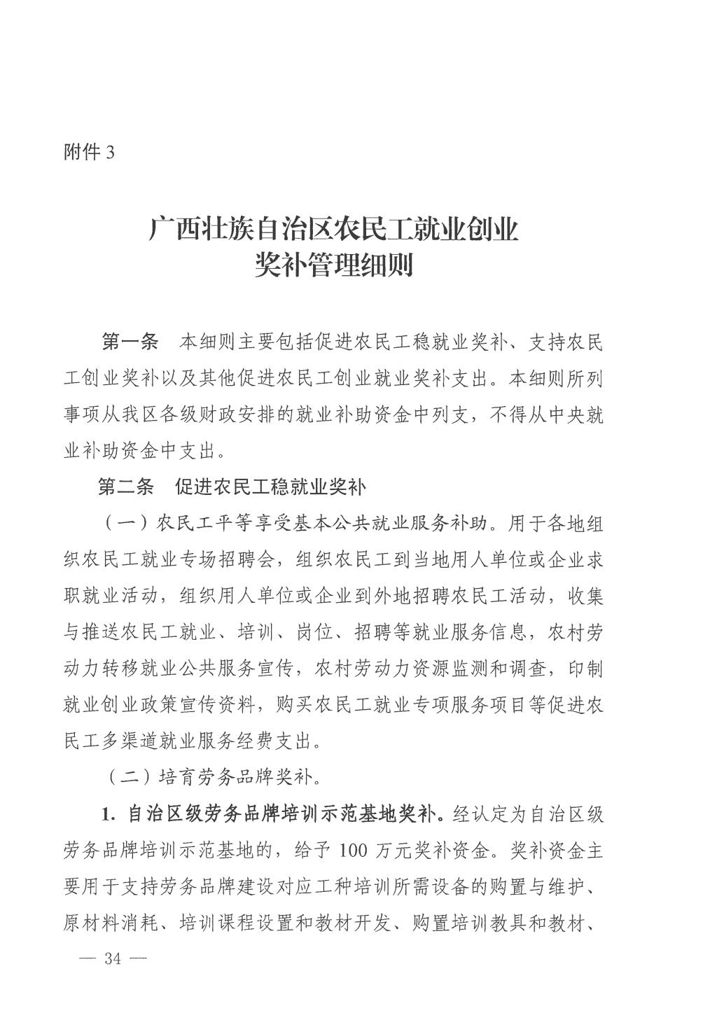 广西壮族自治区人力资源和社会保障厅广西壮族自治区财政厅关于印发《广西壮族自治区就业补助资金管理办法》的通知 发布者:培训中心 2024-03-01 已阅人次 上一条:桂林市人力资源和社会保障局关于印发《桂林市就业创业补贴实施细则》《桂林市职业技能培训补贴实施细则》的通知 关注我们