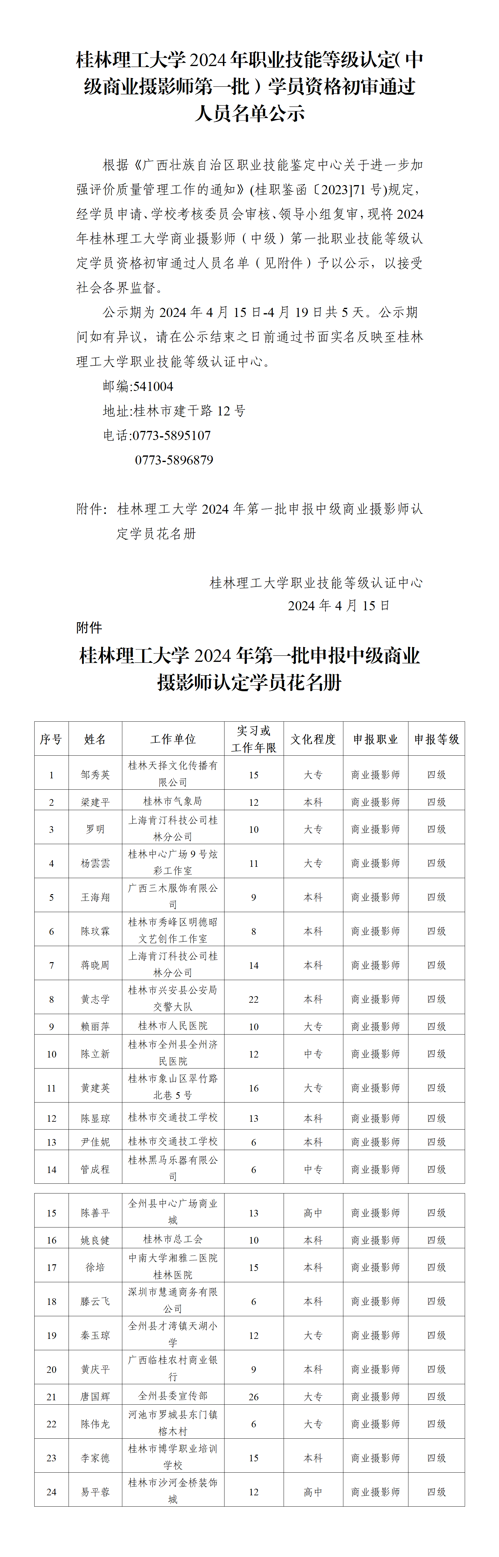 beats365(中国区)-唯一官方网站2024年职业技能等级认定(中级商业摄影师第一批)学员资格初审通过 发布者:培训中心 2024-04-15 已阅人次 上一条:beats365(中国区)-唯一官方网站职业技能等级认定人员成绩公示 下一条:beats365(中国区)-唯一官方网站职业技能培训收费标准表 关注我们